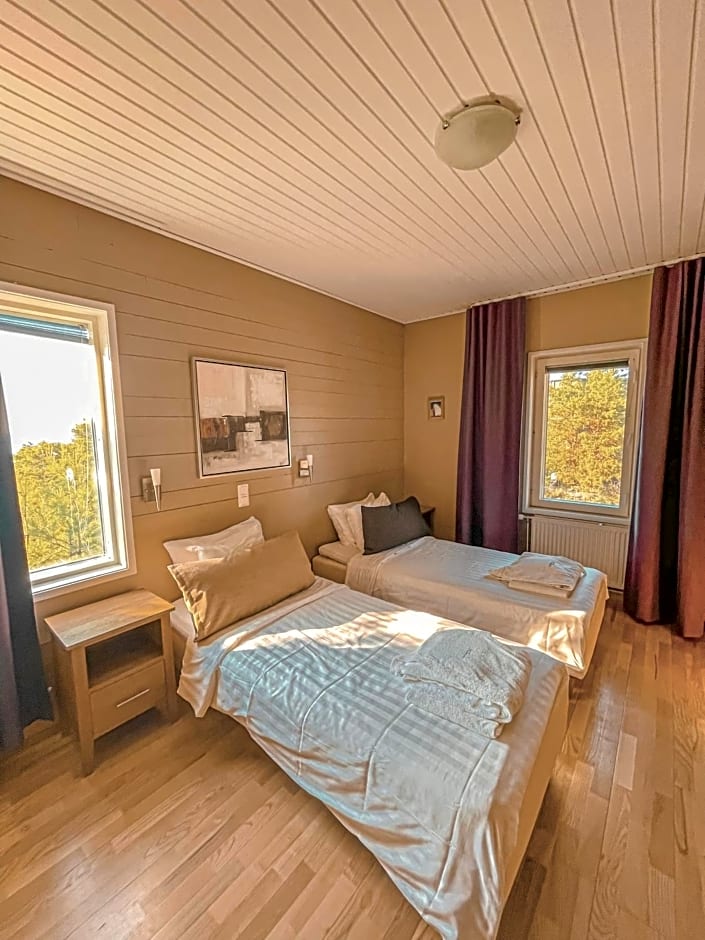 This room offers view towards the forest or the parking lot. Access to pool house with saunas are included in the room price.