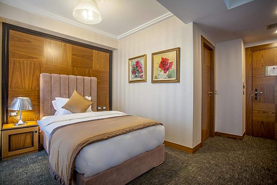 There are various types of rooms available at Hotel Colosseo Tirana to suit your needs. The Small Single Room is ideal for solo travelers, providing a cozy space of 194 square feet. If you're traveling with a partner or small family, the Deluxe Double Room is a great option with its comfortable King size bed and accommodating up to two adults and one child. For those who prefer separate beds, the Deluxe Twin Room offers four Twin beds and a Sofa Bed, providing ample space for two adults and one child. The hotel also offers a Deluxe Single Room and an Executive Suite, ensuring there's a room to cater to every traveler's preferences and needs.