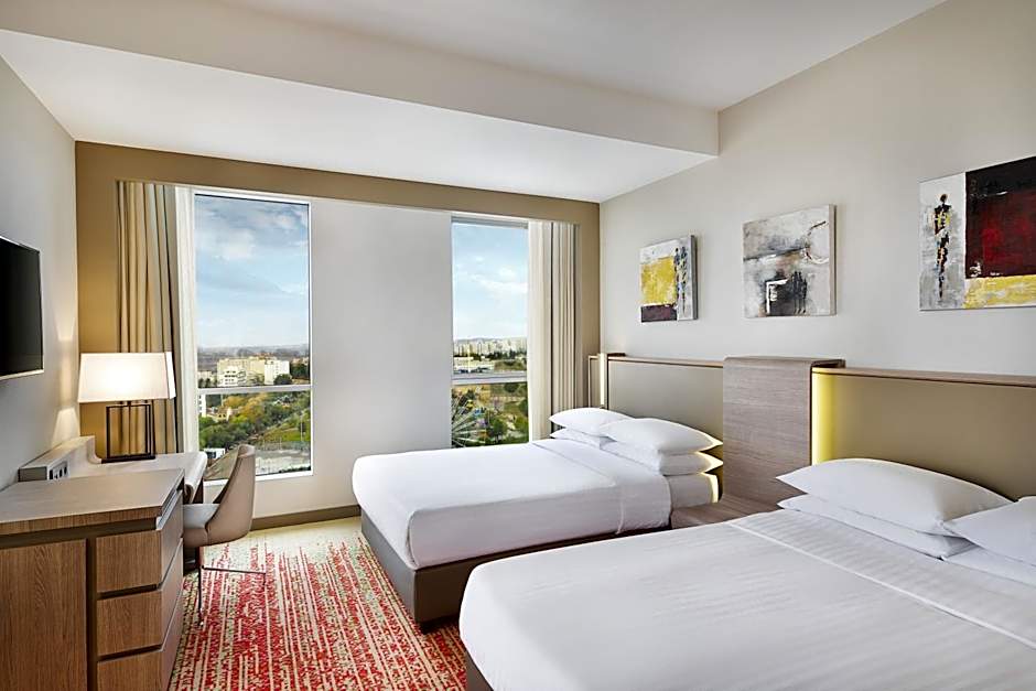 This twin room features a pool with a view. Providing free toiletries and bathrobes, this twin room includes a private bathroom with a walk-in shower, a bidet and a hairdryer. The air-conditioned twin room provides a flat-screen TV with cable channels, a seating area, a wardrobe, a safe deposit box as well as city views. The unit offers 2 beds.