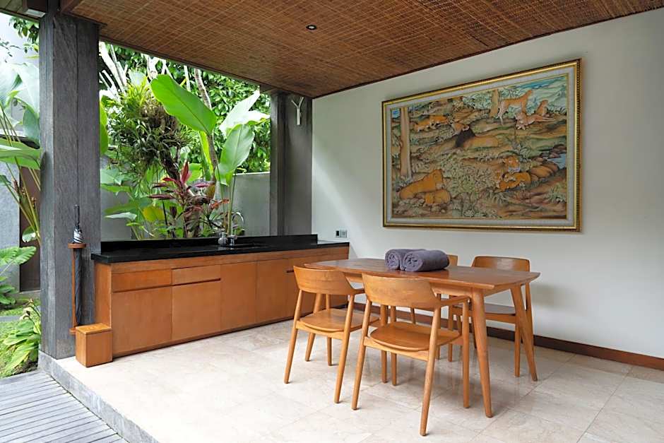 ولكن هناك المزيد من المتعة! انغمس في مسبح خارجي مخصص للبالغين فقط، حيث يسود الهدوء والسكينة. مع جزء ضحل مثالي للاسترخاء وجو هادئ ومنعش، يقدم هذا الواحة وسيلة مثالية للاسترخاء تحت شمس بالي. سواء فضلت الانغماس على سرير تشمس ومعك كوكتيلك المفضل أو السباحة لبضع لفات منعشة، تم تصميم منطقة المسبح خصيصًا للاسترخاء والتجدد. مثالي للأزواج أو المغامرين المنفردين الباحثين عن الهدوء، هذه المساحة تدعوك للهروب إلى حالة من النعيم والصفاء.