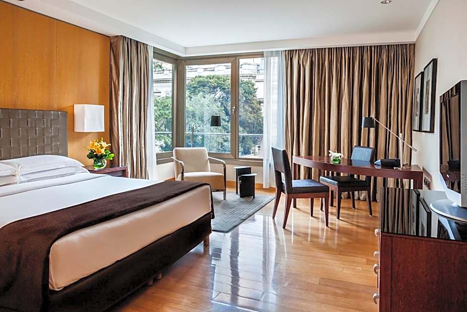 This spacious room inside the Palacio Duhau invite guests to experience contemporary luxurious stay. The elegance of the interior design is enhanced with contemporary décor. It offers one king bed and a spacious working desk illuminated by large windows over viewing the traditional Alvear Avenue or the peaceful gardens, flat screen TV with DVD player and bathroom with bidet area, tub and rain shower. It includes butler service, in-room coffee and wireless Internet.