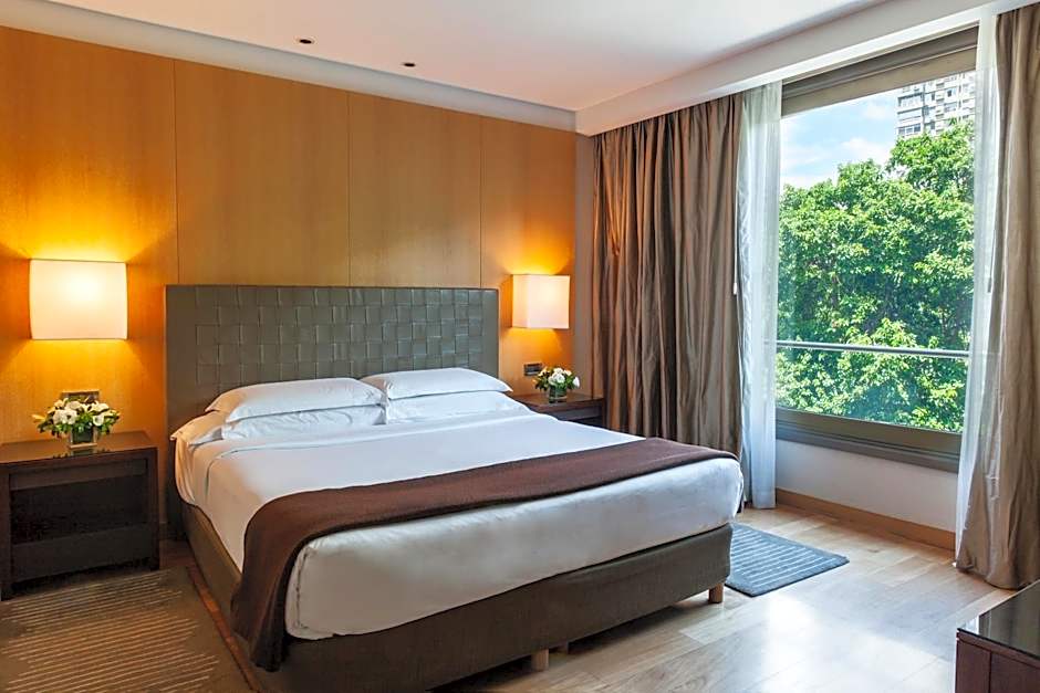 This room features large windows over-viewing the Apostolic Nunciature gardens or the city. Located in Posadas building, this contemporary designed rooms vary from 40 to 55 square yards and include king sized beds, with spacious working desk illuminated by natural light, a flat-screen TV and a marble bathroom.