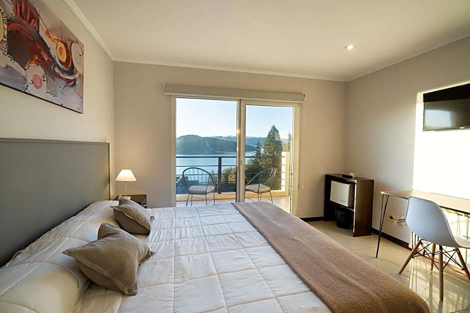 Modern room with Smart TV and private terrace with picturesque views of Lake Nahuel Huapi.