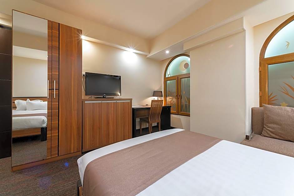 Air-conditioned room with modern décor features a flat-screen TV. Bathrobes, slippers and free toiletries are also provided.