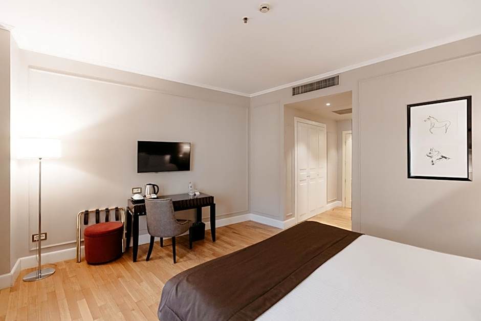 Classically decorated room with elegant furniture features a flat screen TV and hot drinks facilities. Bathrobes, slippers and free toiletries are also provided. This room offers extra space and a private balcony. Average size of this category rooms is 27sq.m.