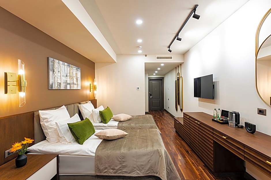 Featuring free toiletries and bathrobes, this twin room includes a private bathroom with a walk-in shower, a bidet and a hairdryer. This twin room is air-conditioned and has a seating area with a flat-screen TV, soundproof walls, a tea and coffee maker, a wardrobe, as well as a safe deposit box. The unit has 2 beds.