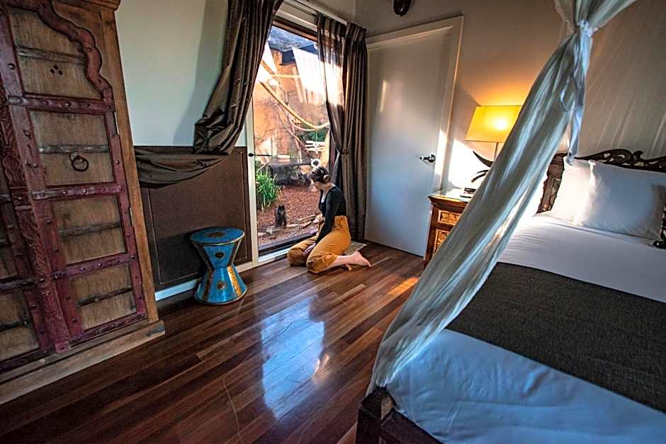 This room overlooks the Molonglo River, or Scrivener Dam and Black Mountain. Guests can relax and watch the Lemurs play through the large viewing window. Some rooms also include views of the lion enclosure.