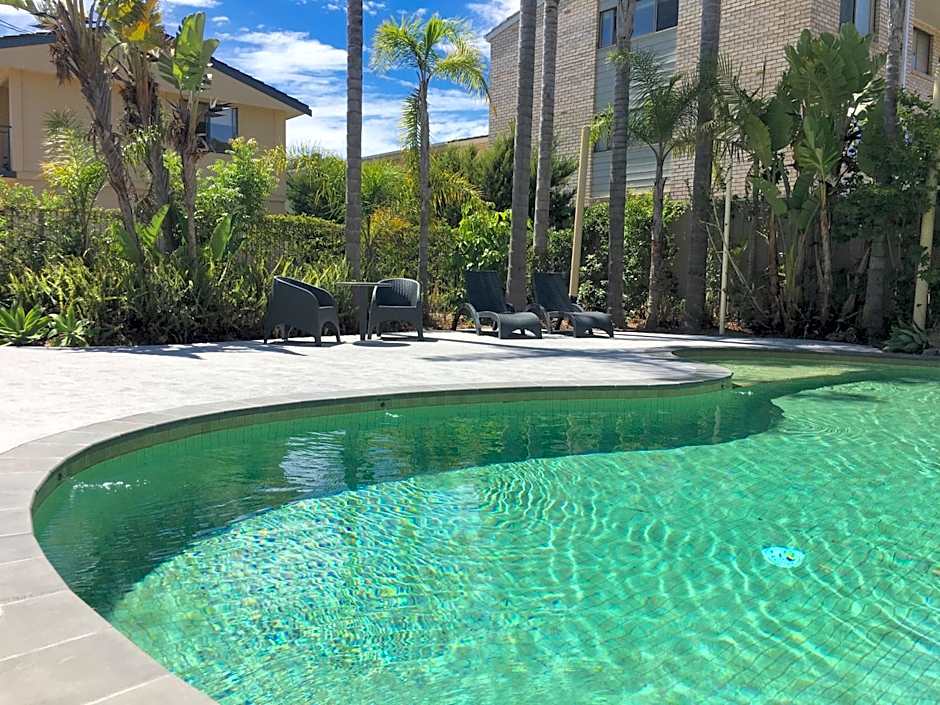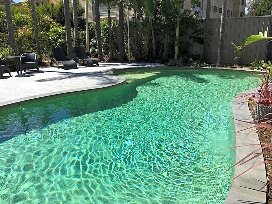 Guests staying at Araluen Motor Lodge can enjoy a variety of leisure amenities during their stay. They can spend time at the beachfront, where they can relax and soak up the sun. The hotel also offers an outdoor swimming pool, complete with a kids' pool and a spa tub, providing opportunities for both adults and children to enjoy a refreshing swim. Guests can also take advantage of the beach chairs/loungers available.