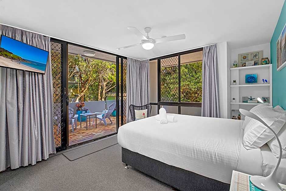 is a four-star seaside retreat in Coffs Harbour, New South Wales, Australia, perched along 121 Ocean Parade and about from the city center. Ocean-view and mountain-view rooms feature private entrances and balconies that invite the sea breeze, while terrace and balcony spaces frame garden, ocean and mountain vistas for a breezy coastal mood.