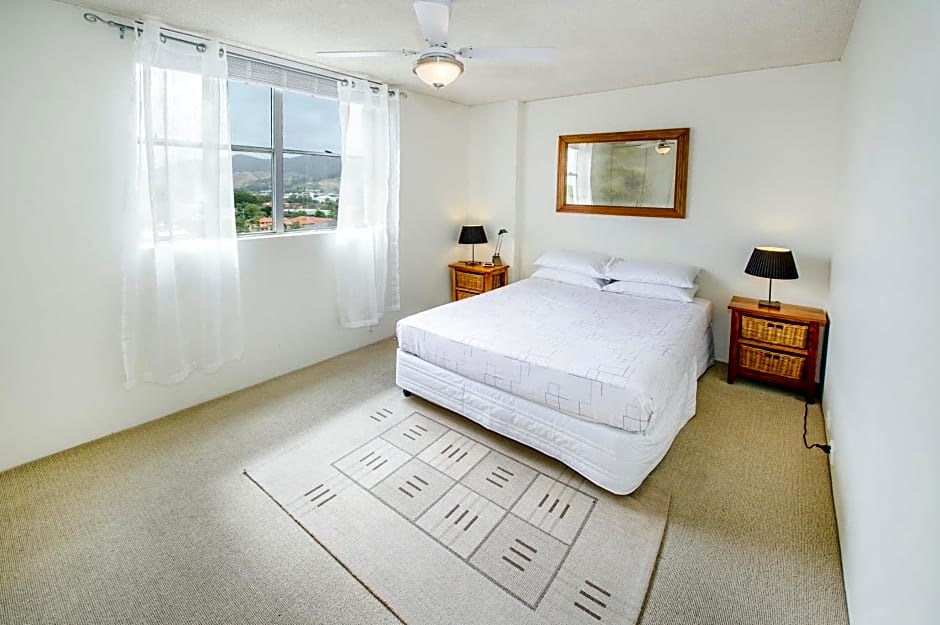 Three-bedroom apartment offers views of Northern side of Coffs Harbor, and partial ocean views. Has a full kitchen and laundry facilities.
