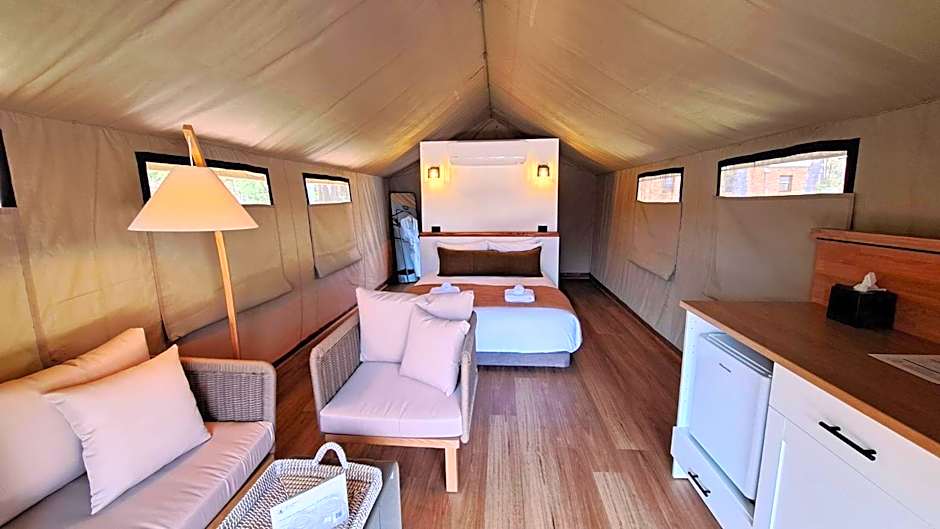 The Tent consists of a queen bed and a single bed. There is one Tent that can facilitates one big family and the Tent consists of 1 queen bed and 2 single beds. Breakfast hampers is included.