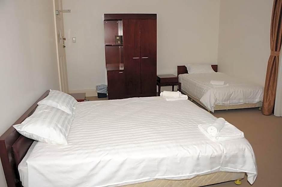 Four room styles welcome different travelers, each designed for comfort. The Family room covers 344 square feet and accommodates 2 adults and 1 child, with two twin beds plus a queen bed. The King Room is 161 square feet and features a queen bed for two adults (with space for a child). The Single Room, at 129 square feet, suits solo stays with a twin bed. The Room - 2 Twin runs 161 square feet and includes two twin beds for two guests. All rooms are non-smoking.