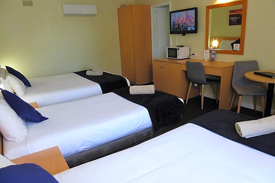 The Sky Rider Motor Inn offers a variety of room options including superior queen rooms, twin rooms, and deluxe queen rooms. The superior queen rooms and deluxe queen rooms accommodate 2 adults and have a queen size bed, while the twin rooms accommodate 2 adults and have 3 twin beds and 1 double bed. The family rooms are available for either 4 or 5 adults and have a combination of twin and double beds, accommodating 2 children as well. All rooms are non-smoking.