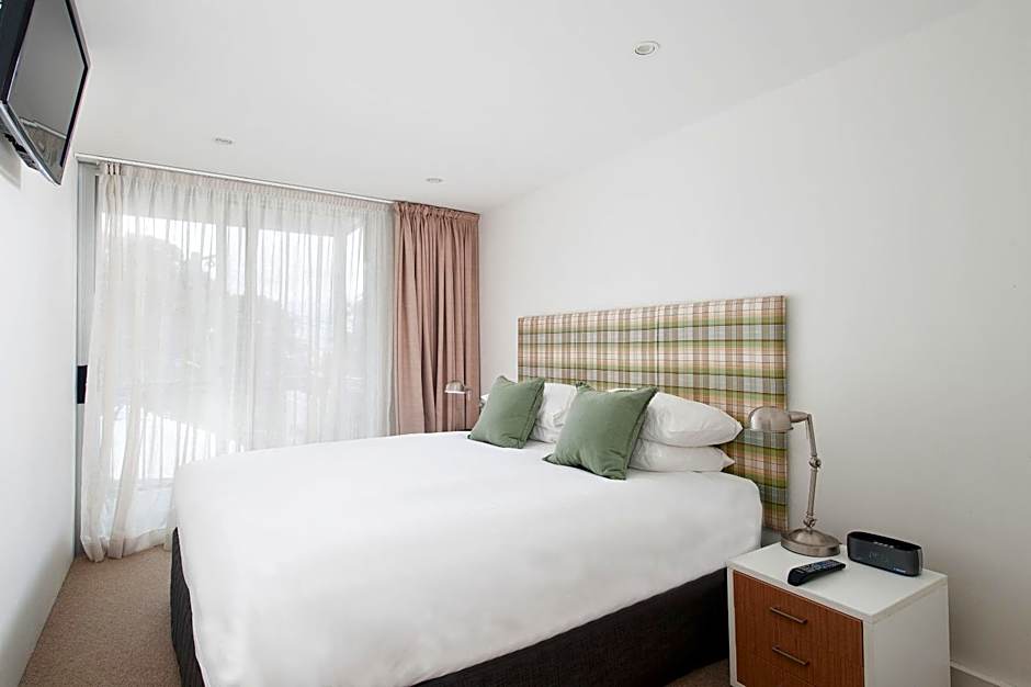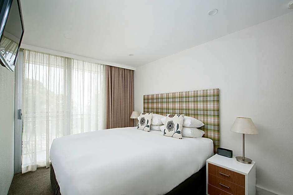 This modern room offers a king bed and a double sofa bed. There is a sitting area with a table and chairs, a 42-inch LCD TV with DVD player, and air conditioning. There is a kitchenette with a microwave, small fridge, toaster, and tea/coffee making facilities. The bathroom has porcelain tiles and stone bench tops, and bathtub and shower over head. Complimentary bathrobes a provided for use during your stay. There is a private balcony with partial water and park views.