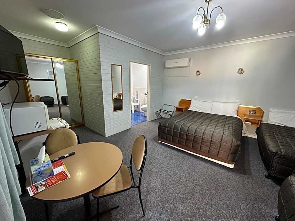The Colonial Motor Lodge Scone offers a Queen Room with a Double bed, accommodating 2 adults. Smoking is not allowed in this room. The Family Room is larger, with 2 Twin beds and 1 Queen size bed, suitable for 4 adults. The Double or Twin Room has a Twin bed and a Queen size bed, accommodating 2 adults. Smoking is not permitted in any of these rooms.