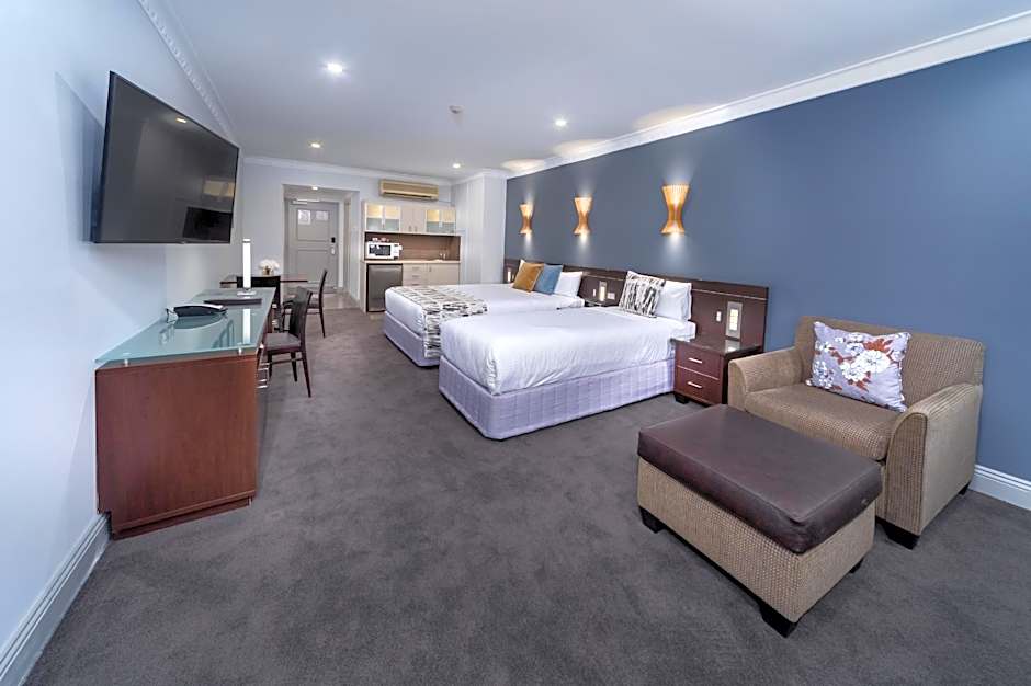This room features a fully equipped kitchen, separate lounge/dining area, and a balcony with great Sydney city views. Free WiFi access, light Continental breakfast, and in-house movies are included.