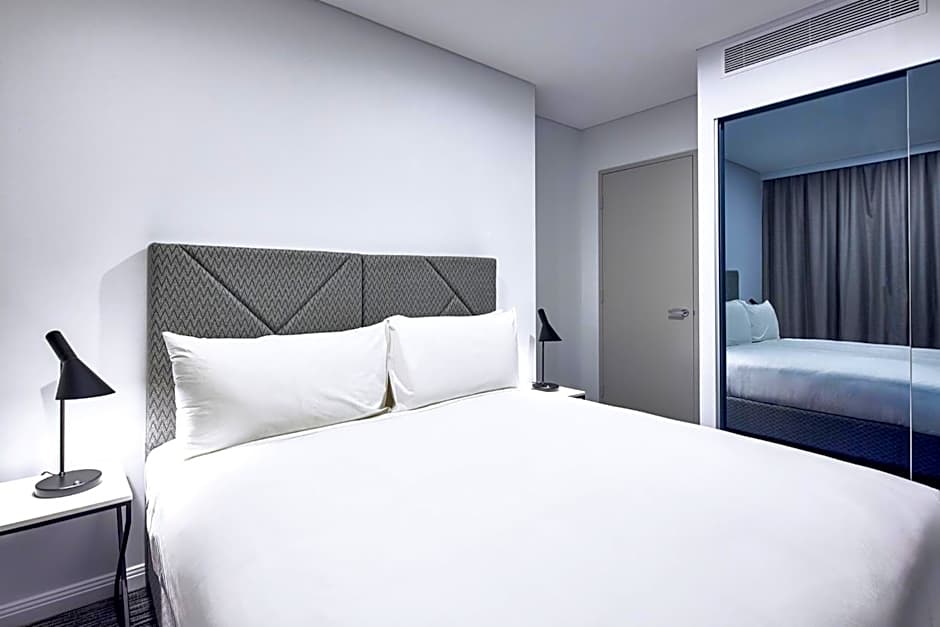 Featuring a king size bed, sofa and dining area and a private balcony, this suite has a fully equipped kitchen and a laundry with a washing machine and dryer. Guest can enjoy Kevin Murphy bathroom amenities. All suites have STAYCAST by Google Chromecast. Please note that the king-size bed cannot be split to accommodate two single beds.