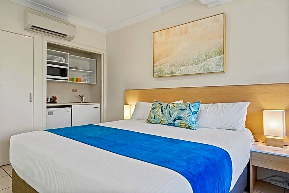 Experience a relaxing coastal getaway in our well-appointed studio apartment. Features include a premium king-size bed, comfortable lounge area, kitchenette, private ensuite, Juliet balcony, and reverse cycle air-conditioning.