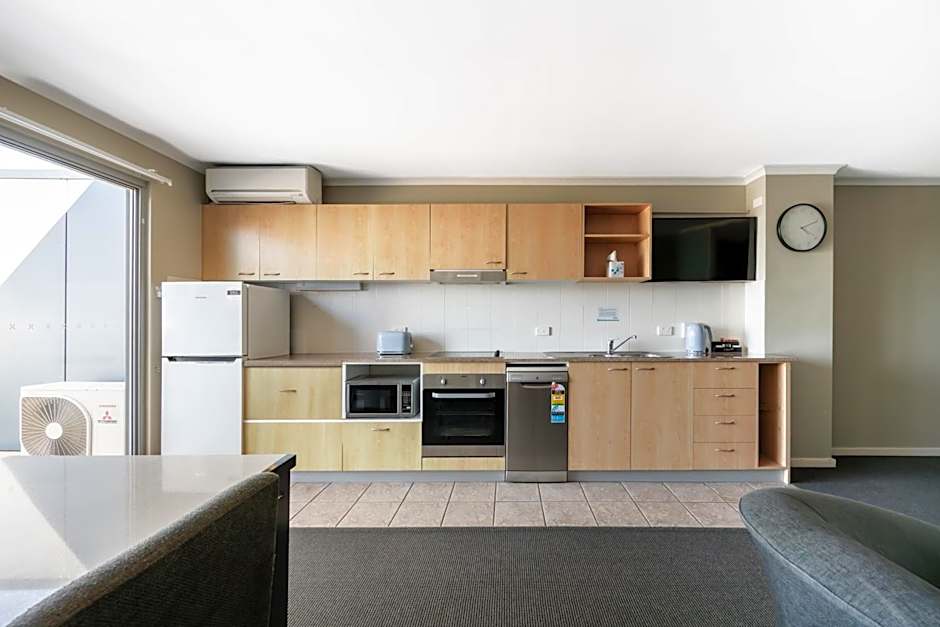 The Two-Bedroom Apartments are fully self-contained and feature two separate bedrooms, a spacious lounge area, dining area and a kitchenette with full sized fridge and freezer, stove top and microwave. Also included is a terrace with an outdoor setting and a separate bathroom with shower over bath and laundry facilities. Individually controlled air-conditioning, WiFi access and an LCD TV with selected cable channels is also provided.