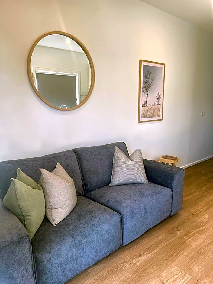 This garden view apartment features an open plan living and dining area with front and back balconies, a smart screen TV and a well-equipped kitchenette. Guests have access to a free guest laundry and garden spa.