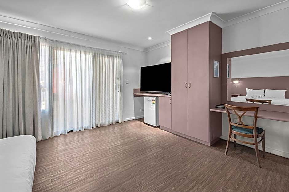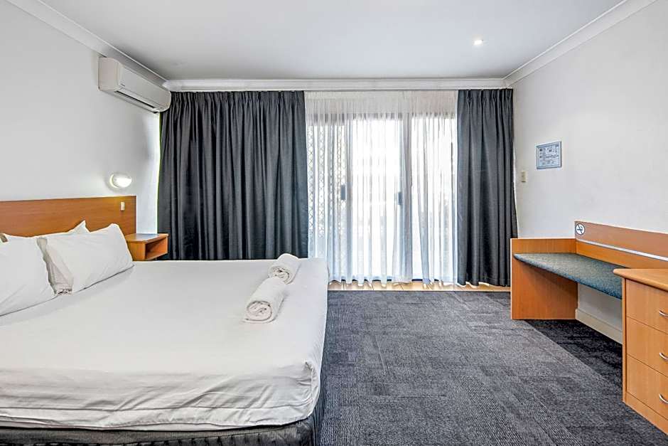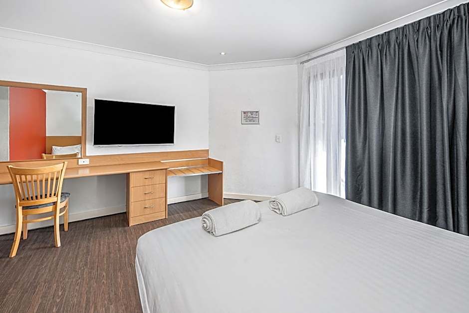 King Rooms offer modern décor, an private bathroom with shower and an outdoor seating area. These large, open-plan rooms feature a king-size bed, air-conditioning, flat screen LCD TV with Austar, work desk, bar fridge, ironing board and hairdryer. Enjoy the convenience of tea and coffee, free movies and complimentary WiFi access.