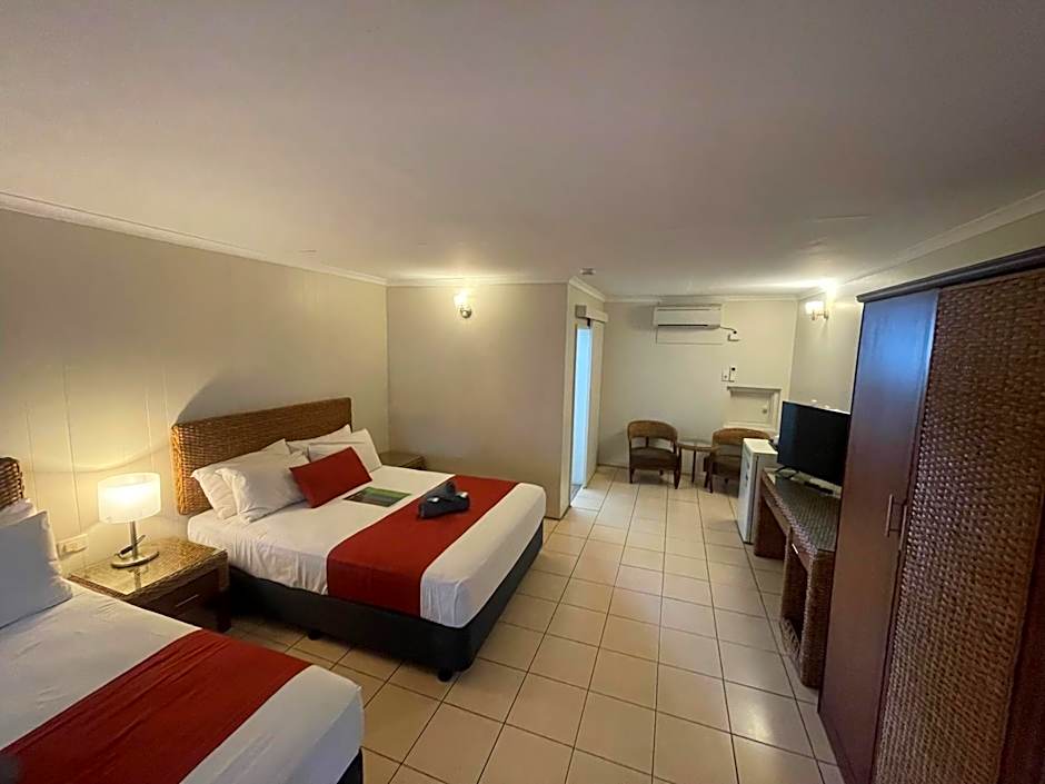 Located in Katherine East, about from the town center, this 3-star retreat welcomes sun-filled days by an outdoor saltwater pool with a shallow end. Free on-site parking and free Wi-Fi keep travel simple, while an on-site bar and a tour desk inspire easy town explorations. Air conditioning ensures comfort, and the leafy garden surrounds a bright patio with garden views, creating a relaxing backdrop for downtime. For daylight adventures, a nearby golf course is available with extra charges, adding a little competition to the NT itinerary.
