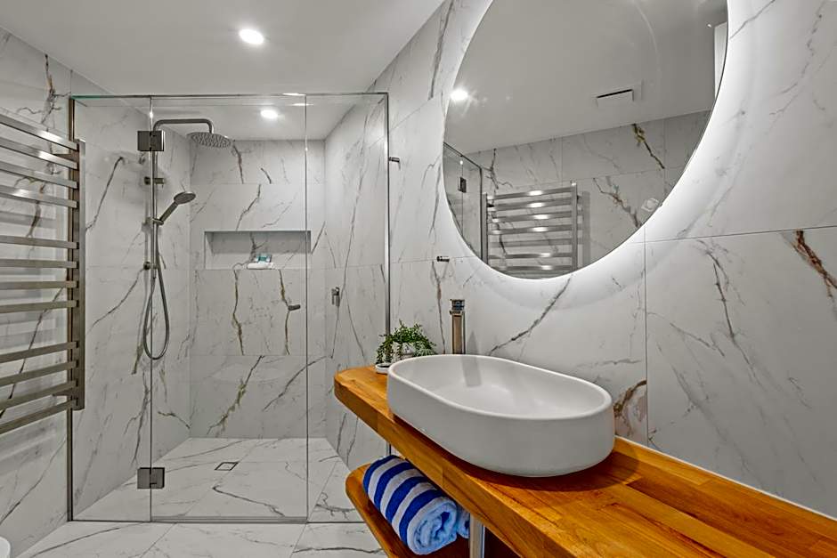 Room is fitted with a washing machine, a DVD player and a flat-screen TV. Has a full kitchen. The private bathroom has a spa bath. Offers views of the ocean.