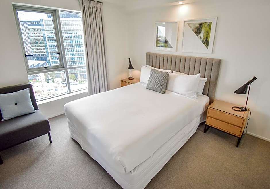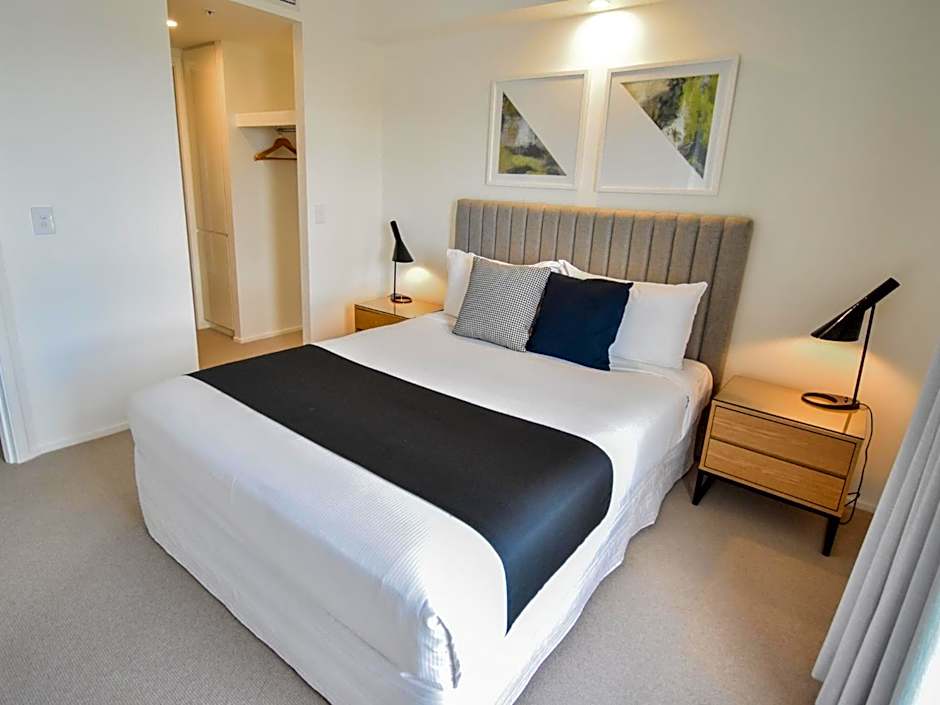 1 Bedroom Apartments are located between levels 8 -18 and feature a fully equipped kitchen with stainless steel European appliances, laundry facilities, fully ducted air conditioning, free Wi-Fi, cable TV and a spacious balcony, Bedding configuration is one queen bed.