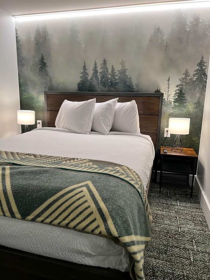 Room with queen bed, ensuite, 50-inch Smart TV, air conditioning, free WiFi, kettle with tea and coffee, towels and linen provided.