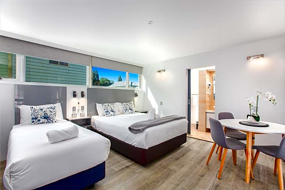 The hotel offers a variety of room types, including Family Rooms, Deluxe Queen Studios, Standard Rooms, Executive Queen Rooms, and Twin Rooms. Smoking is not allowed in any of the rooms. The Family Room accommodates 4 adults and has 2 Twin beds and 1 Double bed. The Deluxe Queen Studio, Standard Room, and Executive Queen Room each accommodate 2 adults and have either a Queen size bed or a Double bed. The Twin Room accommodates 3 adults and has 1 Twin bed and 1 Double bed. Room sizes range from 194 sqft to 237 sqft.