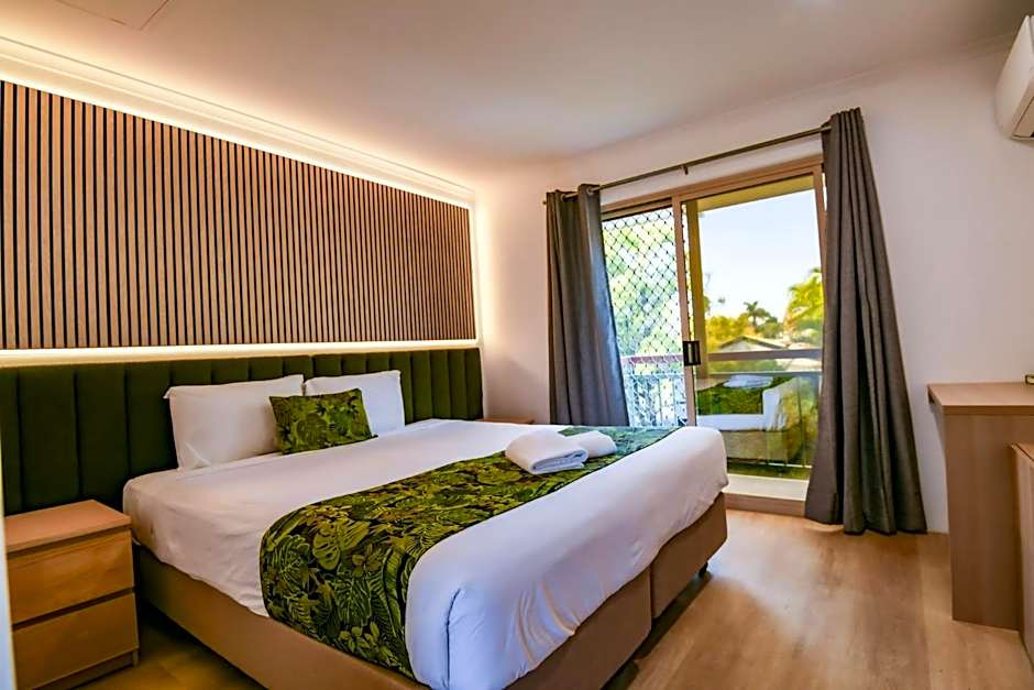 Located on the 1st floor of the motel, this apartment is accessible via external stairs. It has 2 bedrooms and all linen is provided. There is a large outdoor area, lounge, kitchen, dining area and a combined bathroom and toilet.