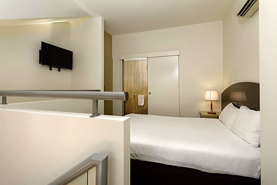 The Waterloo Bay Hotel offers Queen Rooms, One-Bedroom Apartments, and Twin or Triple Rooms. The Queen Rooms have a double bed, accommodate 2 adults and 1 child, and do not allow smoking. The One-Bedroom Apartments have a queen bed and two sofa beds, accommodate 4 adults and 3 children, and do not allow smoking. The Twin or Triple Rooms have a twin bed and a queen bed, accommodate 3 adults and 2 children, and do not allow smoking.
