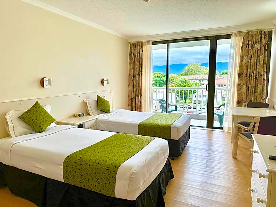 Looking over the Cairns Esplanade and surrounding mountains, all rooms have a queen-sized bed and a king single bed. Air-conditioning and a private bathroom with a bath is provided. There is a balcony, a small refrigerator, tea/coffee making facilities, cable channels and free WiFi. This room is serviced daily.