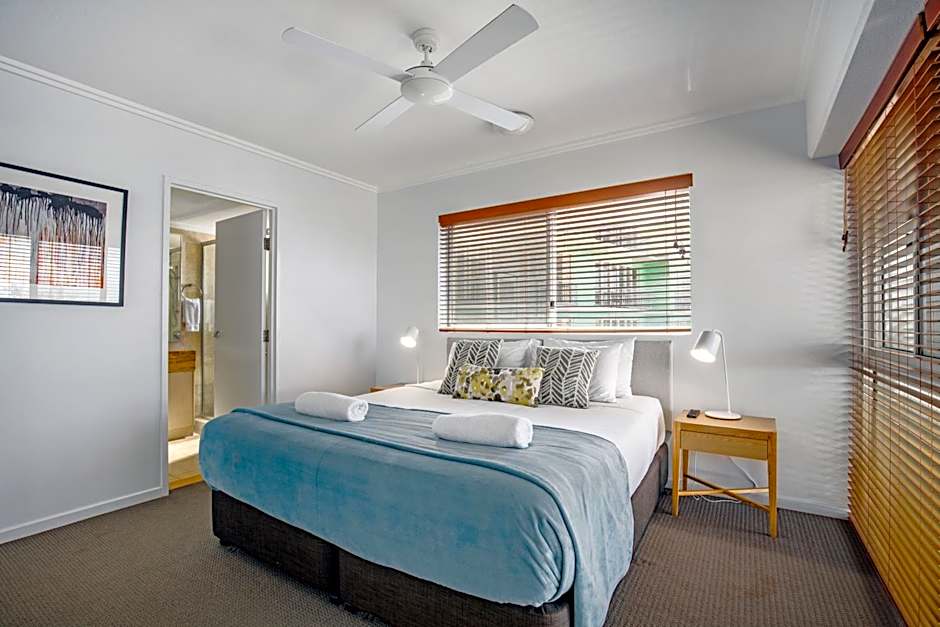 This top floor, poolside apartment features an open plan living/dining area. The main bedroom has an private bathroom. The 2nd bedroom has access to a bathroom with a spa bath. A kitchen, laundry facilities, air-conditioning, a balcony and free WiFi are provided. Private rooftop access is included via an external staircase. The rooftop has barbecue facilities and outdoor seating.