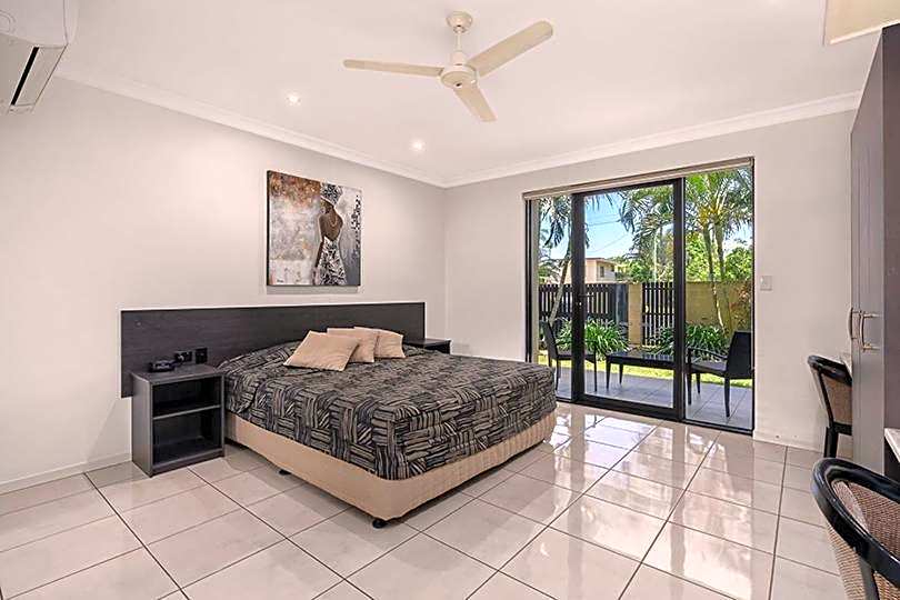 Accommodations cover a diverse mix of studios, suites, and apartments, including options like Deluxe Studio King and Two-Bedroom Apartments. All rooms are air-conditioned and non-smoking, and feature private entrances, with options for garden views, balconies, and kitchenettes or kitchens and kitchenware.