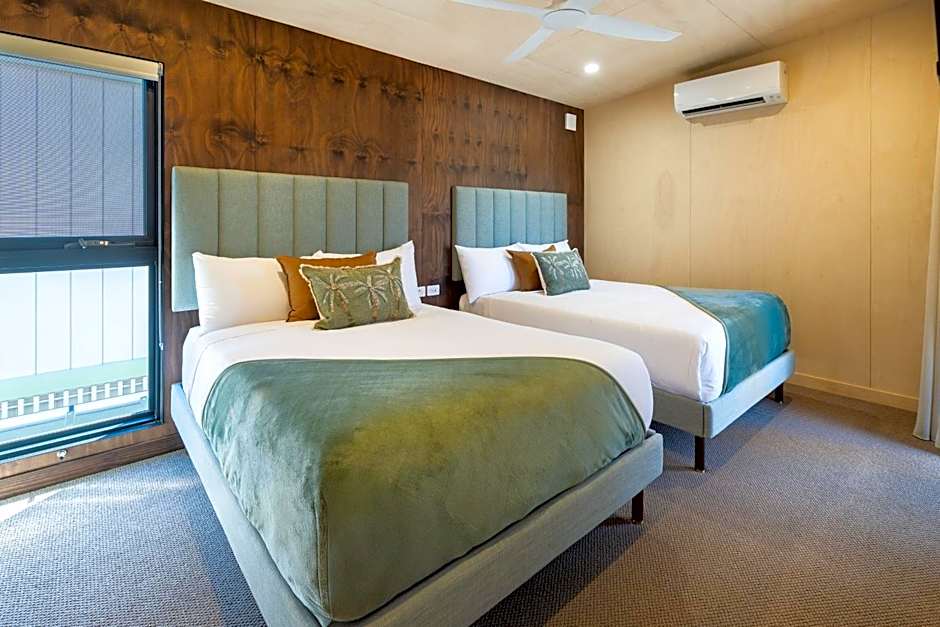 Ashmore Palms Holiday Village offers a variety of room types including cabins, villas, and cottages. Occupancy ranges from 2 to 6 guests per room. Room sizes vary with options for both double and queen beds. Some rooms are designated as non-smoking.