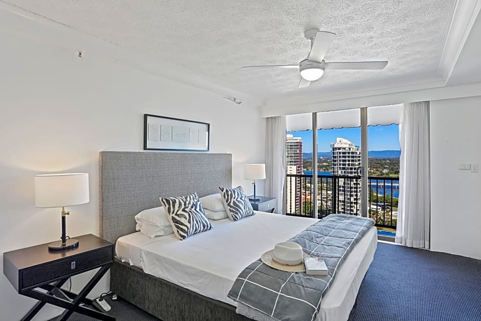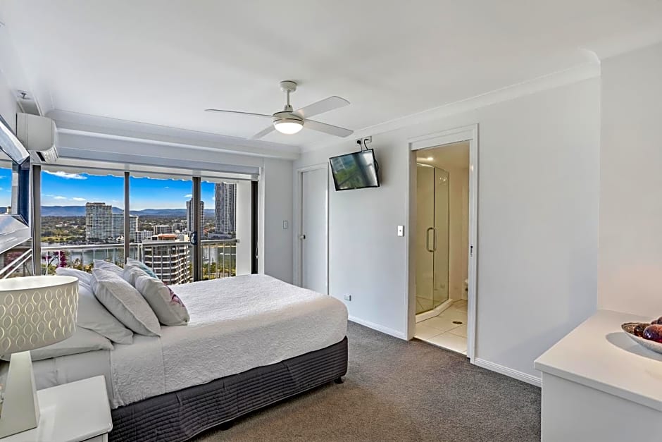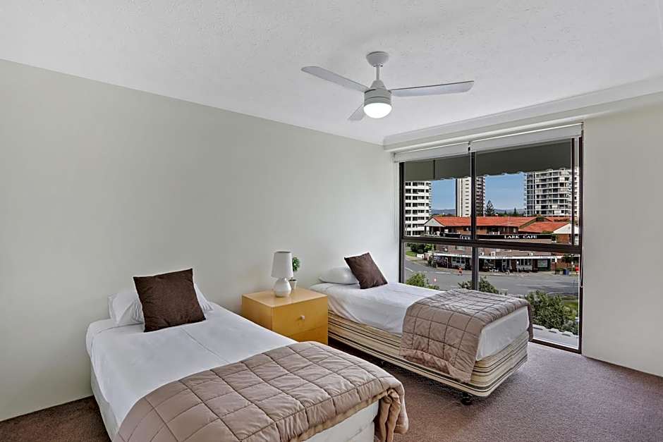 Sunlit and stylish, is a 4-star apart-hotel on the Gold Coast, Queensland. The beachfront setting offers direct access to the sand and both ocean and river views for a dramatic start to each day. Located at 3645 Main Beach Parade, it sits about from the city center, a breezy hop from the action while staying close to the coast.