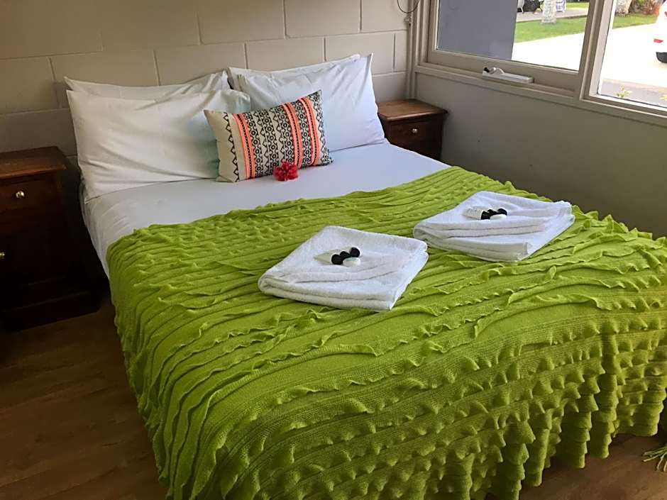 This basic studio has a double-sized bed, a TV a kitchenette that includes a microwave, kettle, toaster, pots, cutlery and crockery.