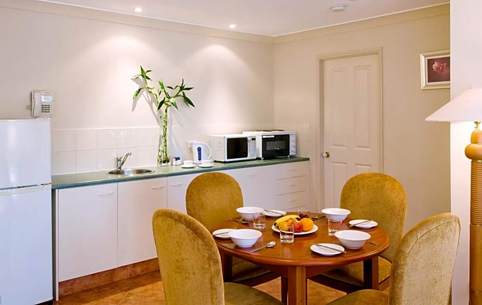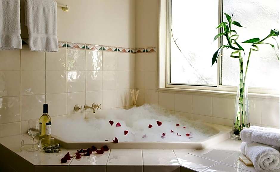 This suite features a spa bath, reverse cycle air conditioning, a TV with DVD player and kitchenette with a microwave. It also has a washing machine and clothes dryer as well as a separate bedroom.