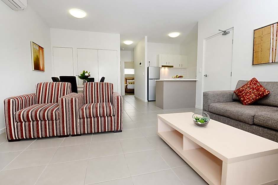The hotel offers a variety of apartment-style rooms including Two-Bedroom Apartments and One-Bedroom Apartments, both serviced and unserviced. All rooms have a no-smoking policy and are provided with a queen size bed(s). The Two-Bedroom Apartments can accommodate 4 adults and 3 children, while the One-Bedroom Apartments accommodate 2 adults and 1 child.