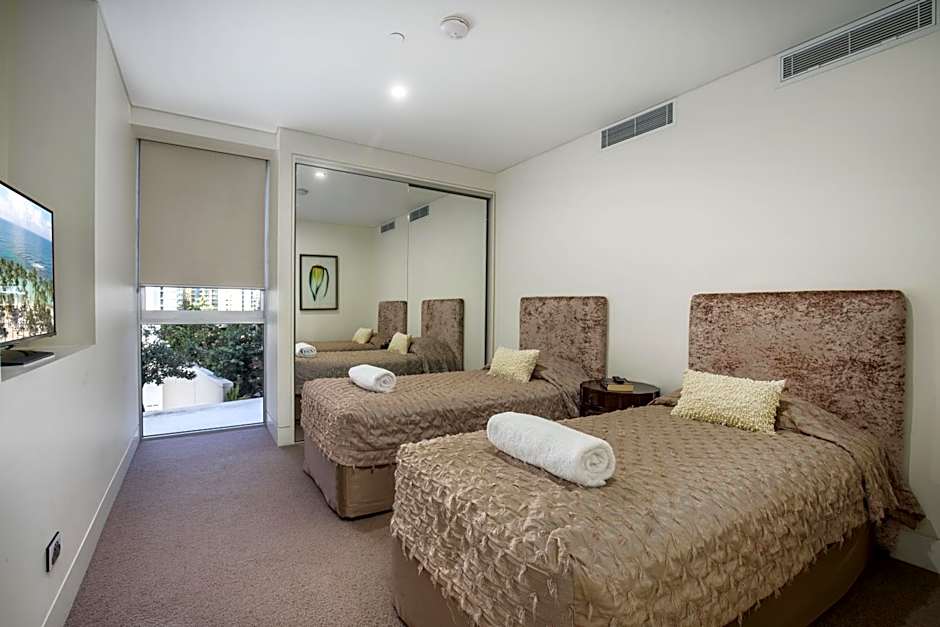 This luxurious air-conditioned Luxe apartment features amazing ocean and pool views. It also includes 3 bathrooms and a separate powder room. It features a fully equipped kitchen, dining area, spa bath, media room and a separate lounge area. This apartment also includes a laundry with washing machine and tumble dryer.