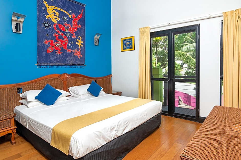 sits at 26-28 Reef Street in Port Douglas, Queensland, Australia, about from the city center. The four-star property offers a mix of ocean and garden views, with options for balcony, terrace, and patio, and features like private entrance, soundproof rooms, kitchen facilities, and extra-long beds (>6.5 ft) to suit a comfortable coastal stay.