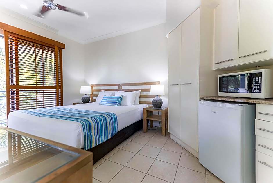 This studio features direct access to the heated lagoon-style swimming pool. There is a kitchenette with granite benches and a 32-inch flat-screen TV. The private bathroom has a shower over a bathtub and shared laundry facilities are available.