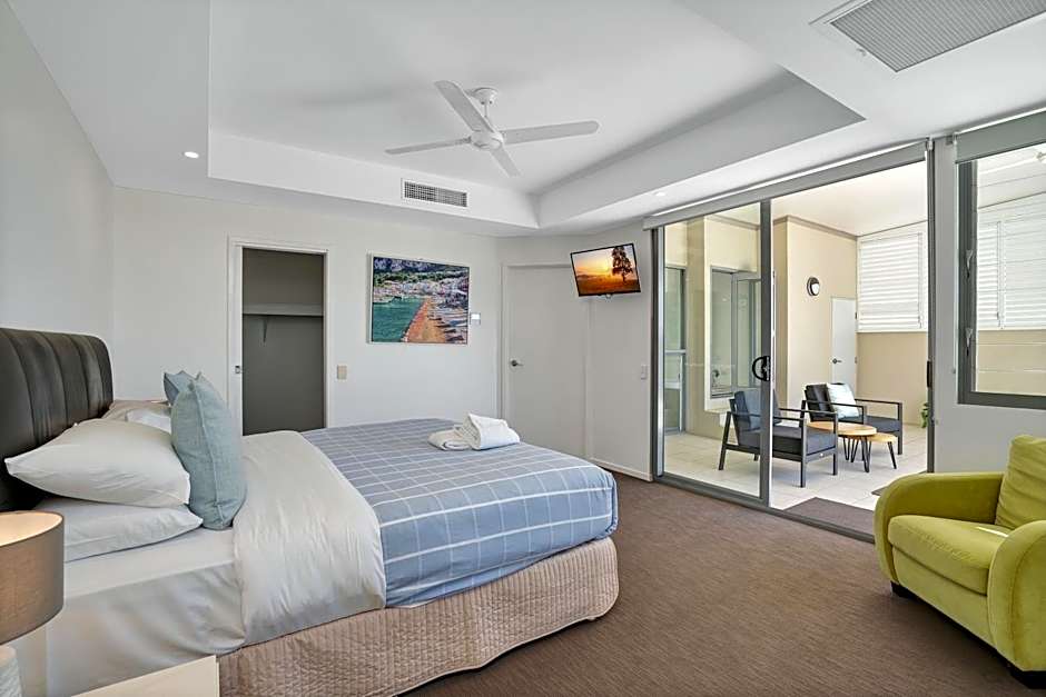 This suite features a full kitchen, laundry facilities and an private bathroom with spa bath. Offers views of the ocean.