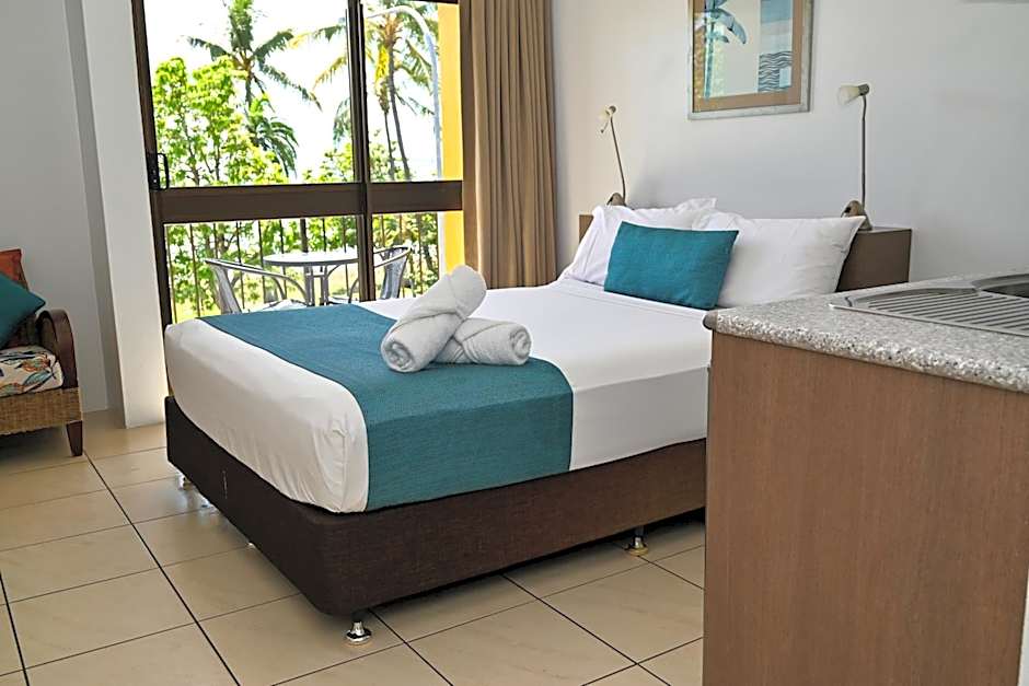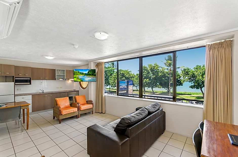 Featuring Coral Sea views and a kitchenette with refrigerator, stove, microwave, cutlery and crockery.