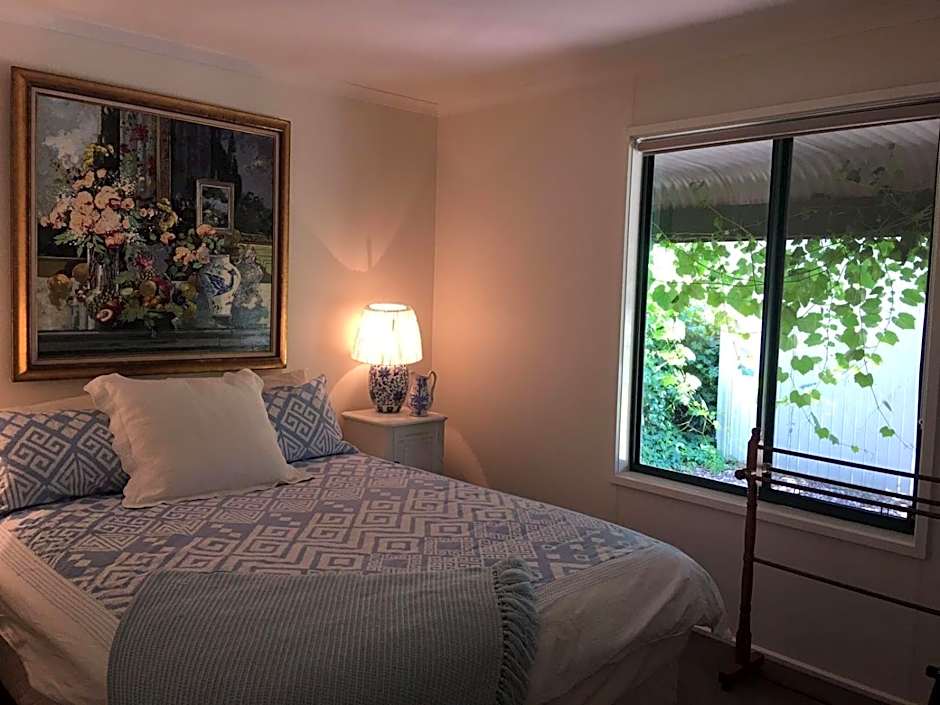 This cottage offers one bedroom with a wrought iron bed, a separate lounge room, kitchen, bathroom with spa bath and separate shower. It is air-conditioned and offers a cozy wood heater. It also offers a BBQ and undercover entertaining area in a private and shady tranquil garden setting. Entertainment includes widescreen TV with a DVD player and a generous selection of DVDs as well as free cable TV and a selection of books and magazines. Netflix is also included and the property offers extra linen towels and linen. There is a sofa bed in the lounge area.