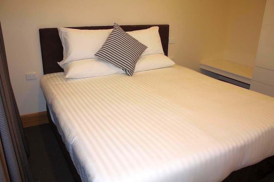 These one bedroom apartments feature contemporary decor and a spacious living area with sofa bed. They offer air conditioning, stainless steel modern kitchen appliances, washing machine, quality furnishings, leather lounge suites, writing desk, wireless broadband, flat screen TVs, DVD player and entertainment unit, built in robes, carpeted bedroom and living areas.