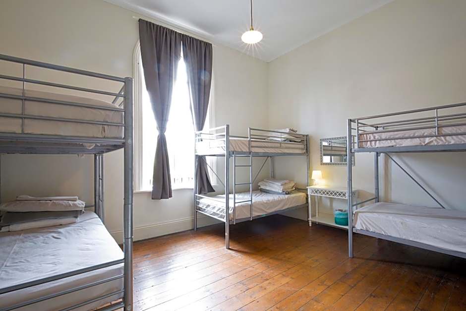 This family room was originally one of the jail warden's offices. It is spacious with 6-yard high ceilings and a large arch window overlooking the jail's front gardens. This room sleeps 6 guests in single bunk beds, with all bed linen provided. It is located in the right wing, alongside a shared lounge, kitchen and bathroom.