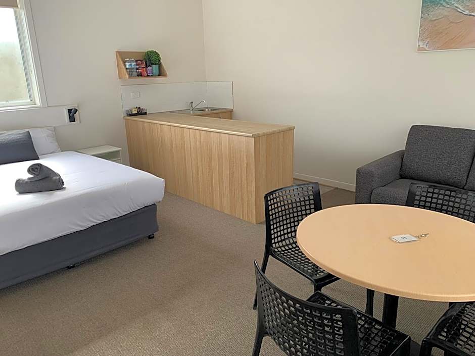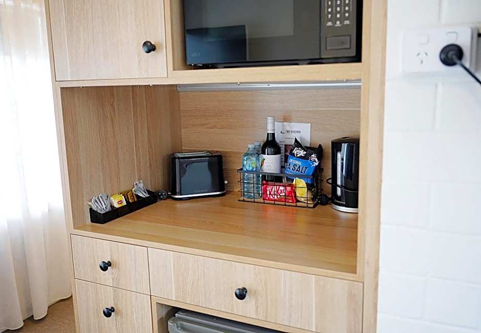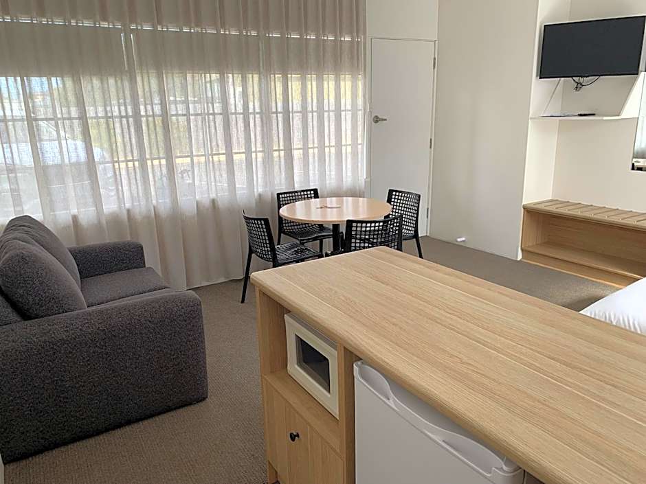 Deluxe Queen Rooms - These newly renovated queen rooms with all new appliances features a queen-size bed, 2-seater lounge, private bathroom, air-conditioning, flat-screen TV, free wireless internet, a small refrigerator, tea and coffee making facilities, dining table with 2 chairs, microwave, crockery, cutlery, toaster, luggage rack, hairdryer and ironing facilities. Free onsite parking and all linen is included. There is no capacity for additional beds.