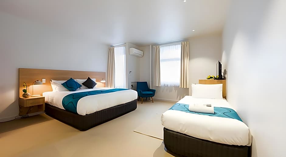 This air-conditioned room is fitted with a king-sized bed and single bed, small fridge, tea/coffee making facilities and a TV set. WiFi is available. Features views of the Derwent River.